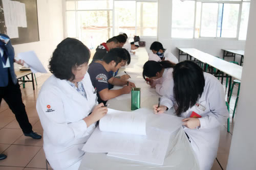 認(rèn)真填寫體檢資料的獻(xiàn)血人員